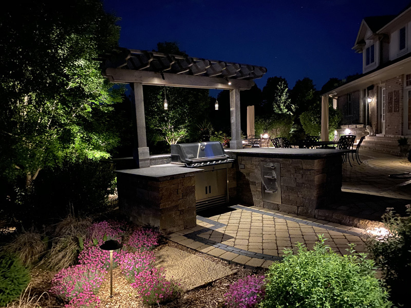 Regular-voltage lighting is great for lamp-posts or for flood lights to illuminate in front of a garage, but when it comes to creating ambiance in an outdoor living space, nothing achieves that effect as well as low-voltage lighting